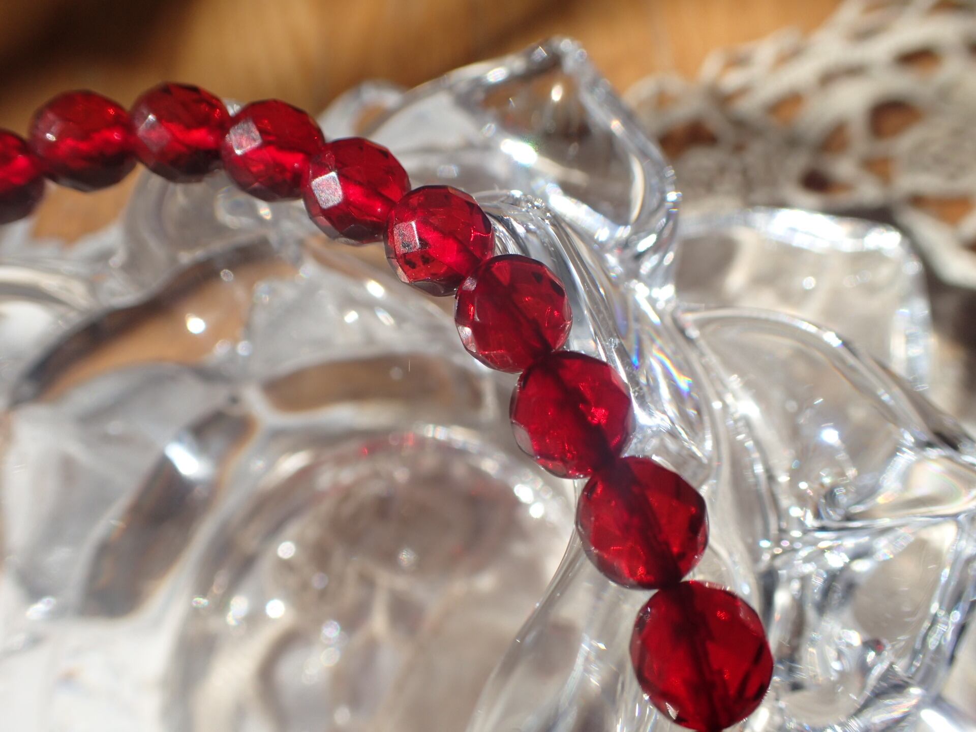 レッドアンバー ブレスレット 切子玉